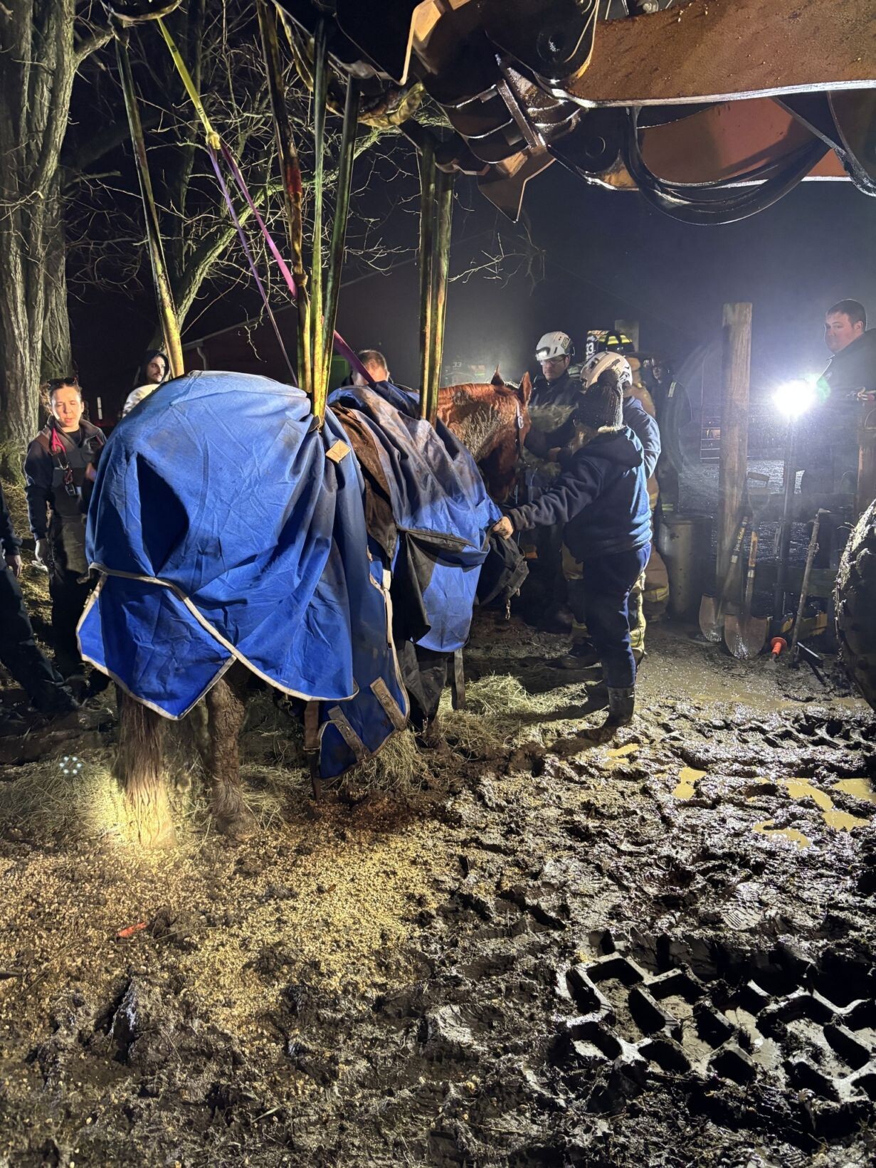 “Our US&R Chief collaborated with Centre Square officers and a veterinarian to develop a rescue plan,” officials wrote. “Given Red’s age, the duration he had been down, and the ground temperature, it was determined that waiting for a Becker Sling was not an option.” A Becker Sling is a specialized rescue harness used to lift large animals, especially horses, when they are injured, stuck, or unable to stand.