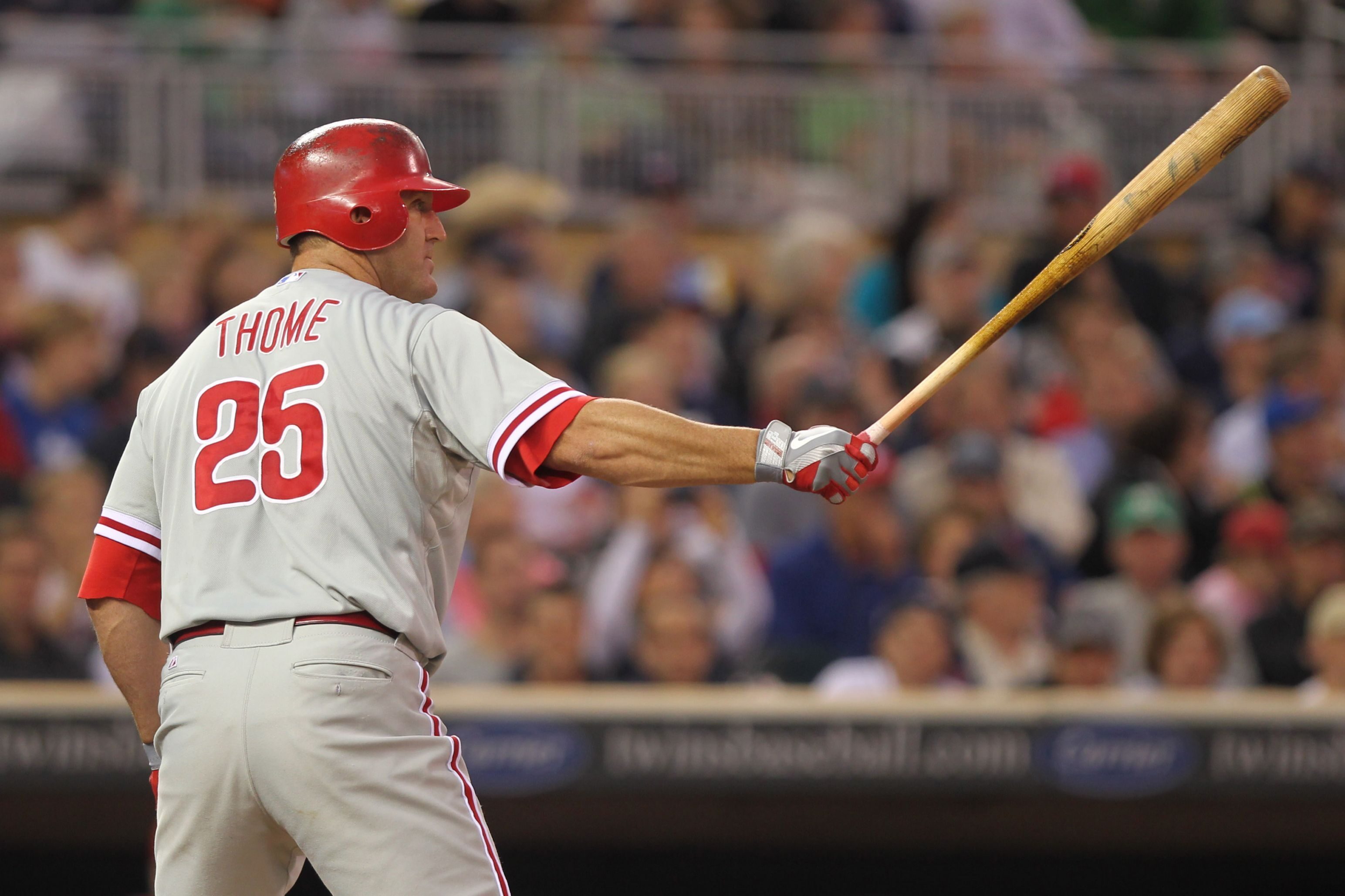 Thome wore No. 25 with the Phillies from 2003-2005, and then again when he rejoined the team in 2012. 89 of the 101 home runs Thome hit as a Phillie came in his first two seasons with the team, with a 47-homer season earning him a fourth-place finish in NL MVP in 2003. Thome — who is one of nine players in MLB history with 600 home runs — hit his 400th home run while playing for the Phillies in June of 2004: